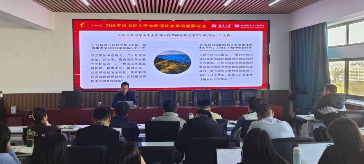 随后,李文华聚焦于进一步全面深化改革的总体思路与系统部署,条分缕析地讲解了全会所规划的改革蓝图架构,以及各领域改革的相互关系、推进节奏与协同策略等,使教职工们对国家全面深化改革的顶层设计有了清晰的认知与理解,为在各自工作岗位上积极对接与践行改革举措奠定了理论基础。