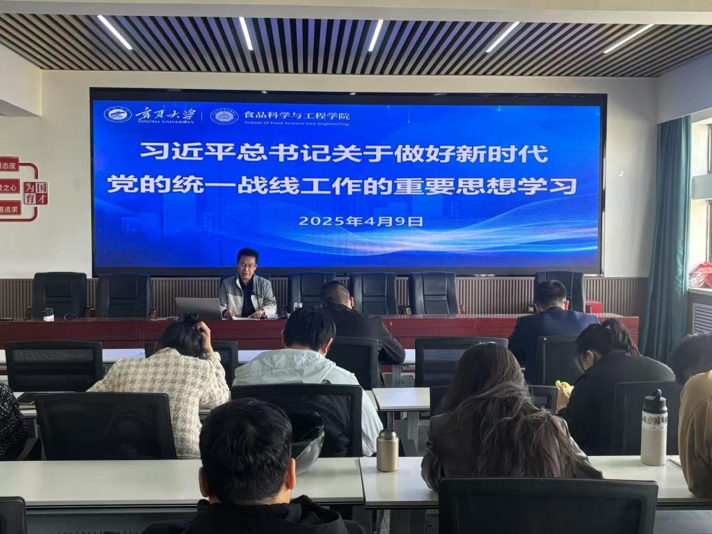 随后,李文华带领学院全体党员教师学习了习近平总书记关于做好新时代党的统一战线工作的重要思想。他强调,作为高校教师,要主动加强思想政治引领,积极营造团结和谐、积极向上的校园文化氛围;在人才培养中,要注重培育学生的家国情怀和社会责任感,推进多元融合,构建有温度、有力量的教育体系。同时,他鼓励教师发挥专业优势,通过建立学生帮扶制度等具体举措,服务学生成长成才。