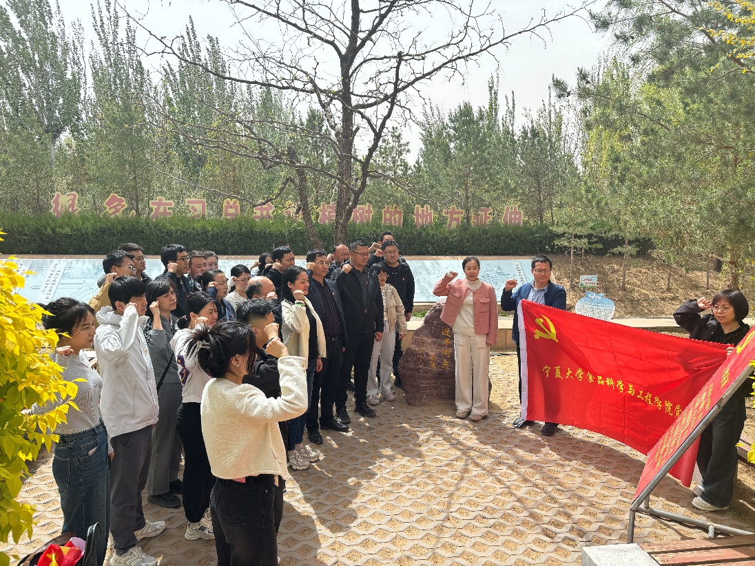 在宸喜园,大家怀着崇敬的心情,来到习近平总书记2008年亲手种下的枣树前,感受一棵树见证沙漠变绿洲的伟大变迁。在鲜红的党旗下,全体党员干部庄严肃立,重温入党誓词,铿锵有力的誓言回荡在绿意盎然的土地上,激励每一位党员不忘初心、牢记使命,坚定生态文明建设的责任与担当。