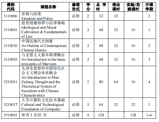 最低必修学分数32.5;最低选修学分数0;其中实验/实践环节修读4.5学分。