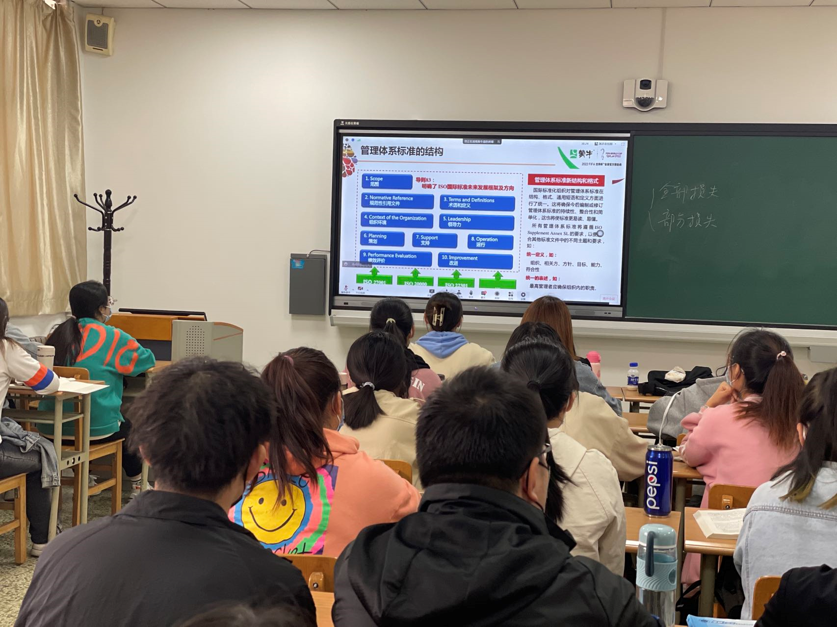 课上,殷老师为同学们系统介绍了企业质量管理、食品安全管理和实验室管理三大体系。特别是基于ISO9001:2015相关标准给同学们重点讲解了企业质量管理体系的历史沿革和背景、方法及原则、相关标准以及内审技巧等内容。