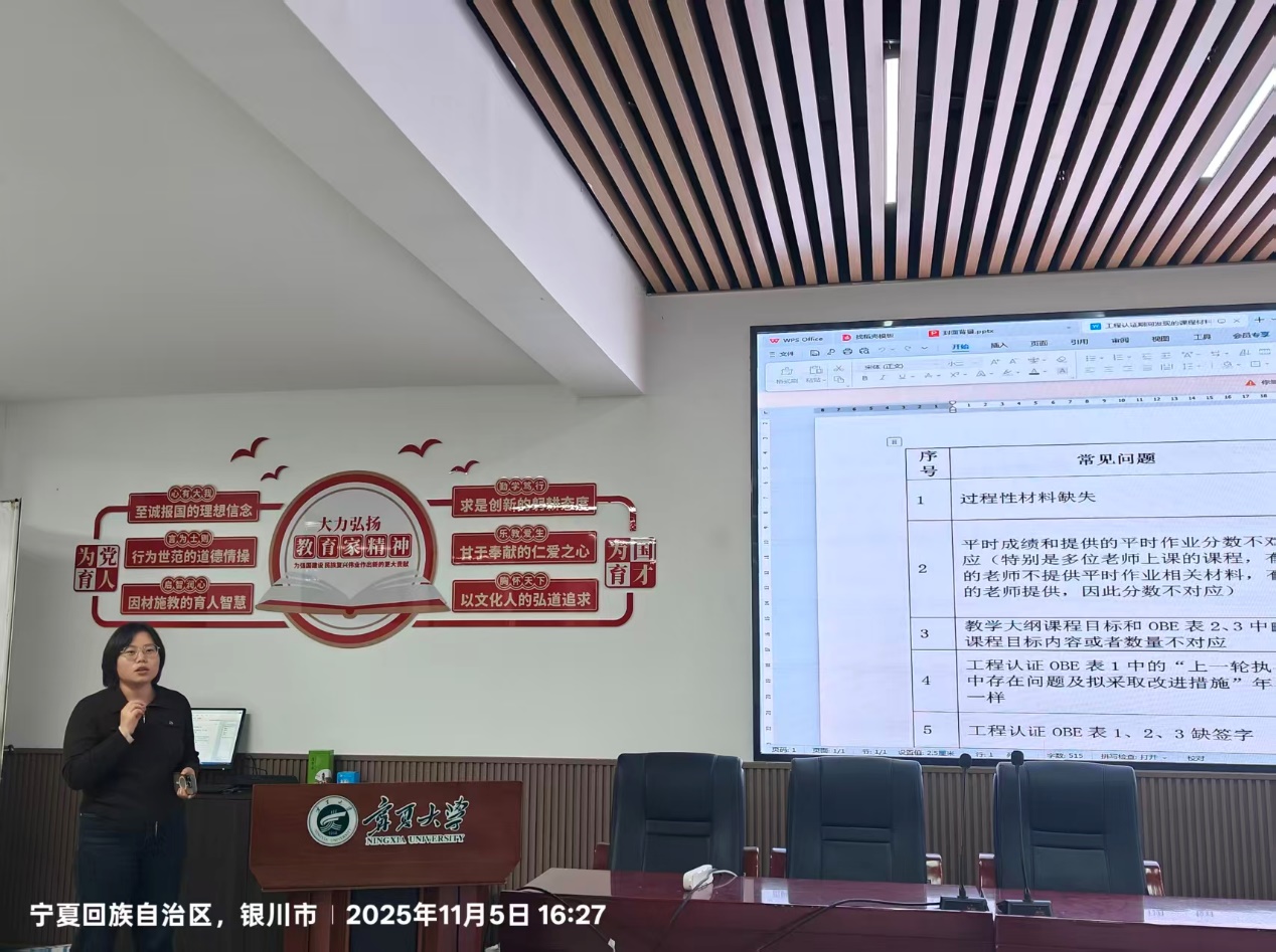 曹松敏老师则聚焦于工程认证工作,就前期各类教学材料收集中遇到的常见问题进行了集中梳理与反馈,并提出了切实可行的解决方案与优化建议,为后续材料的规范化整理指明了方向。