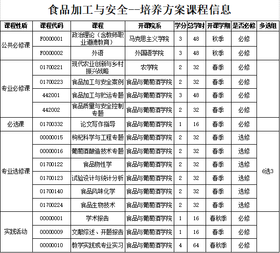 “食品加工与安全”领域农业硕士是与优质农产品或优质食品原料生产、农产品加工与食品制造、食品质量安全控制及监管等方面任职资格相联系的专业学位。以发展现代农业和食品产业为宗旨,为相关企事业单位和管理部门培养具有坚实的基础理论和宽广的专业知识, 能够独立承担食品加工与安全相关的专业技术或管理工作,具有较强的解决实际问题的能力和创造力,具有良好职业道德的应用型、复合型高层次人才。