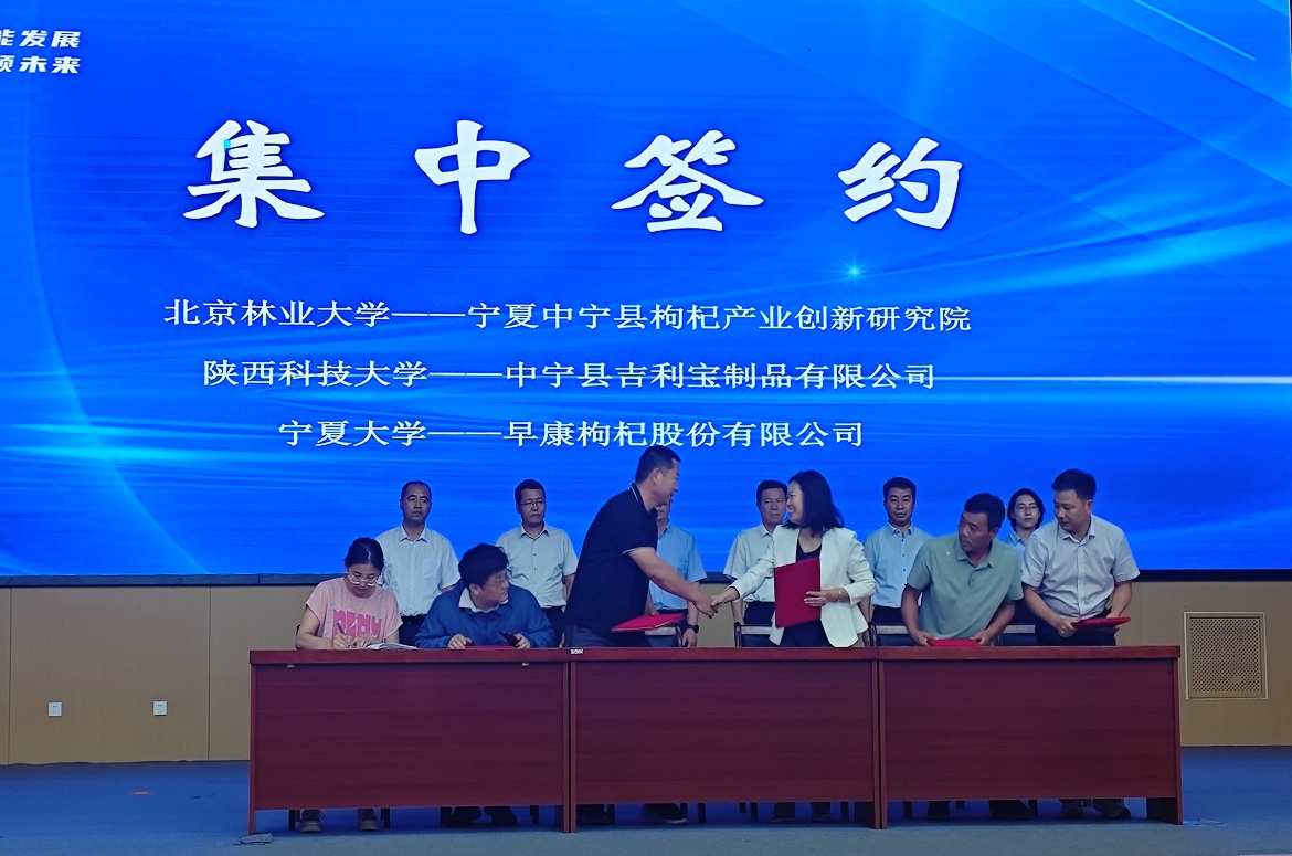 在随后的集中签约仪式上,学院与早康枸杞股份有限公司正式签署“逆流切向模式超声强化枸杞制浆提质增效关键技术与应用”合作转化协议。此举标志着学院该项科研成果成功落地中宁产业一线,将通过技术推广应用为当地枸杞制浆环节升级提供关键支撑,进一步推动中宁枸杞产业从传统加工向高效高质方向转型。