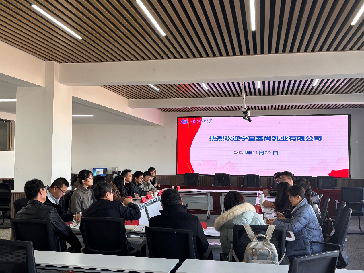 2024年11月29日,受刘源院长邀请,宁夏塞尚乳业有限公司董事长闫建国一行6人莅临香港三级片 座谈交流,共同探讨乳品产业创新发展之路。座谈会在明远楼521会议室举行,刘源院长主持会议。