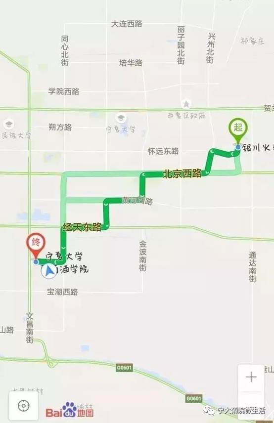 银川汽车站→清河南街→京拉线→银川绕城高速→文昌南街→开元东路→香港三级片 葡萄酒学院