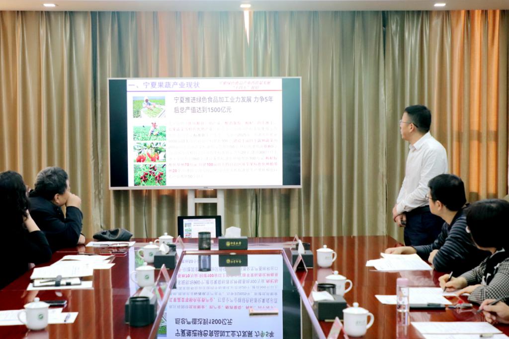 刘贵珊博士从宁夏果蔬产业现状、团队研究方向、团队成员、机构设置、实验室条件、科研成果、合作单位及平台等七方面介绍了宁夏回族自治区特色农产品保鲜加工科技创新团队的发展现状,并表示团队的科研成果在自治区成果转化应用过程中取得良好的经济效益,有力地推动了自治区特色农产品的的高值利用。