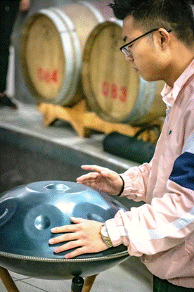 第一位拥有手碟的学生,他将自己对葡萄酒的热爱谱写成歌,悠扬的乐声在酒窖中回荡。张顺学长向同学们分享了他曾经学习葡萄酒专业的经验,他希望同学们首先要保证学习成绩,无论大家对于本专业的认识有多少,专业能力和学习成绩不能落下,只有全面发展可以提高大家的学习能力和适应能力。随后他和同学们分享了自己从事葡萄酒行业的就业经历,目前中国的葡萄酒行业蒸蒸日上,有很广阔的发展前景。他希望,同学们能够提高专业自信和宁夏葡萄酒文化自信,祝愿同学们能在未来可期的葡萄酒行业发挥自己的优势,将中国葡萄酒带向全世界。