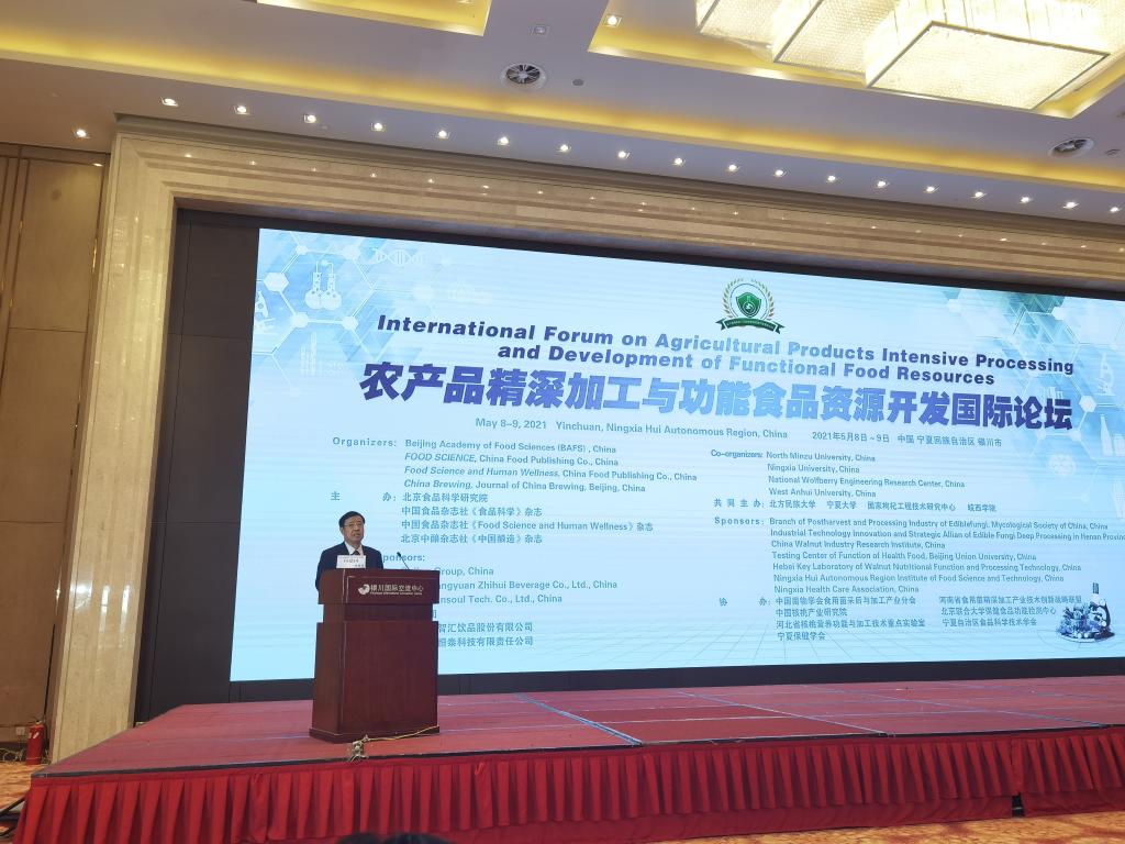 作为本次会议的主办方之一,与北京食品科学研究院和中国食品杂志社《食品科学》杂志、《食品科学与人类健康》杂志、北京中酿杂志社《中国酿造》杂志、北方民族大学、国家枸杞工程技术研究中心以及皖西学院共同举办,中国菌物学会食用菌采后与加工产业分会、河南省食用菌精深加工产业技术创新战略联盟、中国核桃产业研究院、北京联合大学保健食品功能检测中心、河北省核桃营养功能与加工技术重点实验室、宁夏回族自治区食品科学技术学会、宁夏保健学会支持协办。本次会议主要围绕“农产品精深加工、功能食品资源开发”等方面的重大理论研究和技术开发展开深入探讨,共有来自国内外的180余位专家做了精彩学术报告。