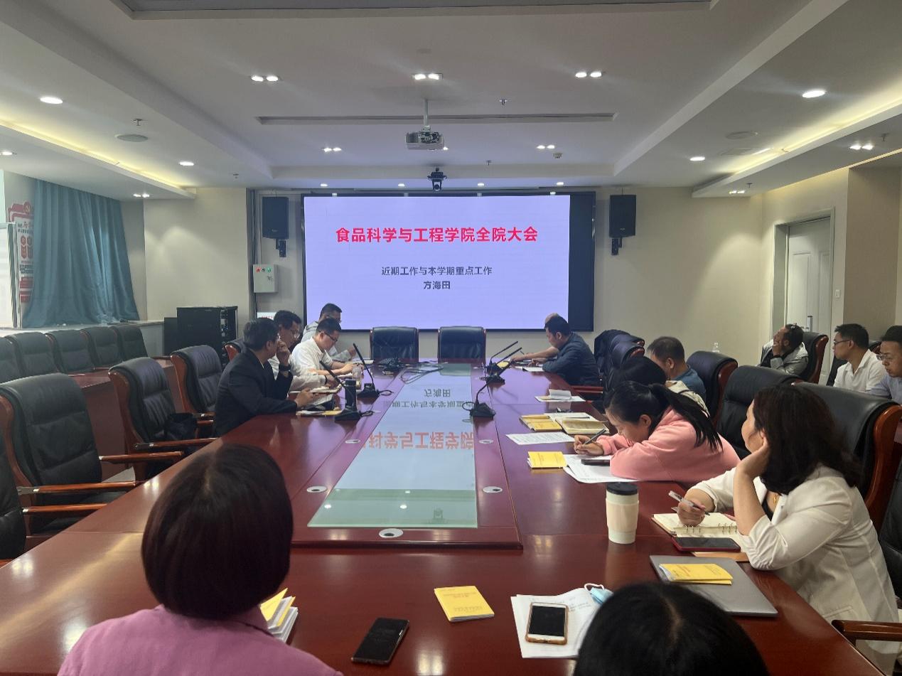 王松磊副院长通报了新学期教学工作及对标工程认证教学要求,强调了本学期工作重点及教学规划,并对近期青年教师基本功大赛、学院教学制度建设等工作进行安排部署,最后通报了“欧贝尔”第五届全国食品专业工程实践训练综合大赛西部赛区决赛及学生生产实习情况。