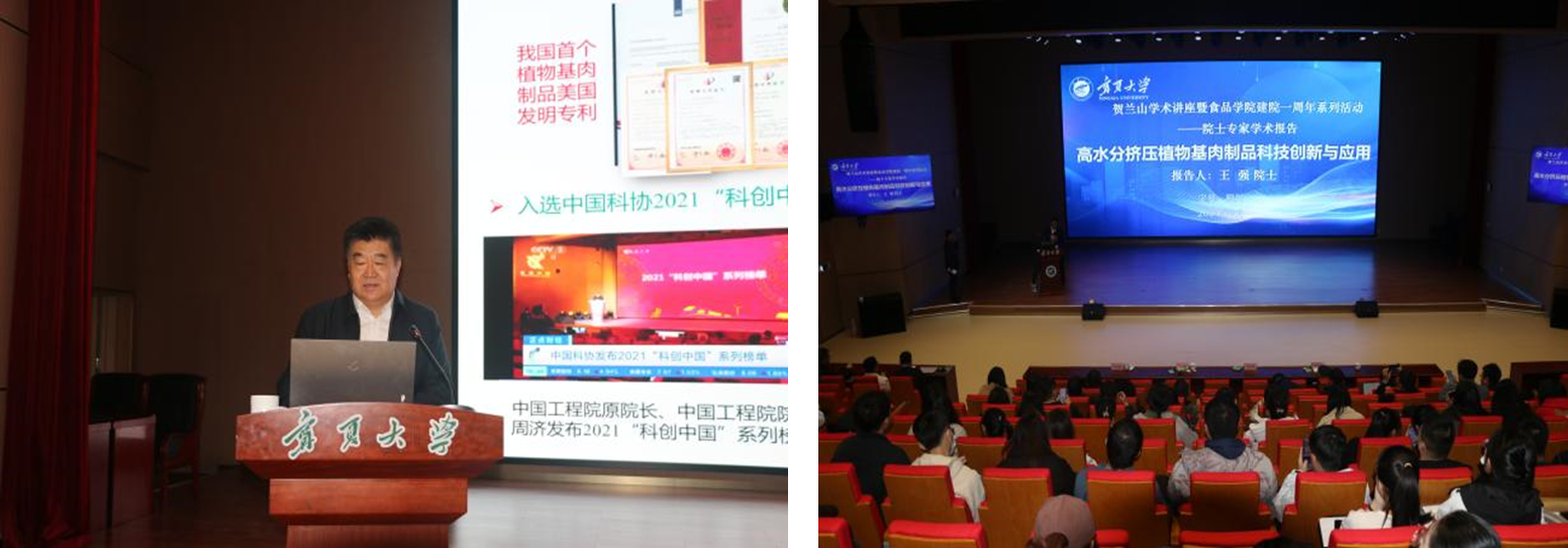 建院一周年系列活动暨贺兰山学术讲座——院士专家学术报告在我校笃行楼1号报告厅成功举办。本次学术报告由中国工程院院士孙宝国教授、国际食品科学院外籍院士王强研究员赵谋明教授主讲,刘炎胜副校长主持,香港三级片