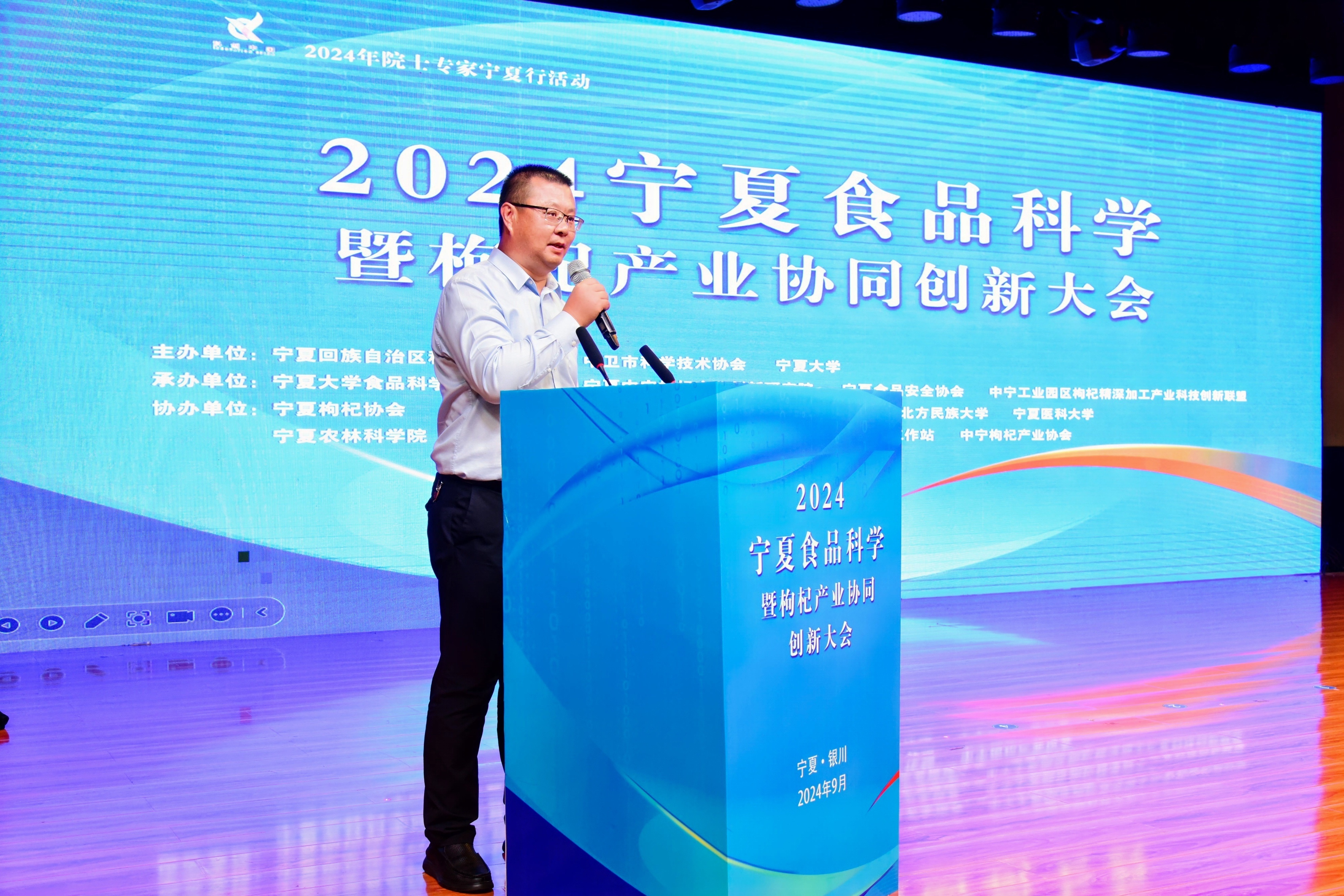 、宁夏中宁枸杞产业创新研究院、宁夏食品安全协会和中宁工业园区共同承办。会议旨在搭建一个高层次、宽领域的交流平台,汇聚食品行业精英的智慧与力量,共同探讨食品科学前沿技术,让食品科学研究更具深度、更接地气、更好地赋能宁夏食品产业高质量发展,推动食品科学与枸杞产业的产学研协同创新、融合发展,加速科技成果向现实生产力转化。
