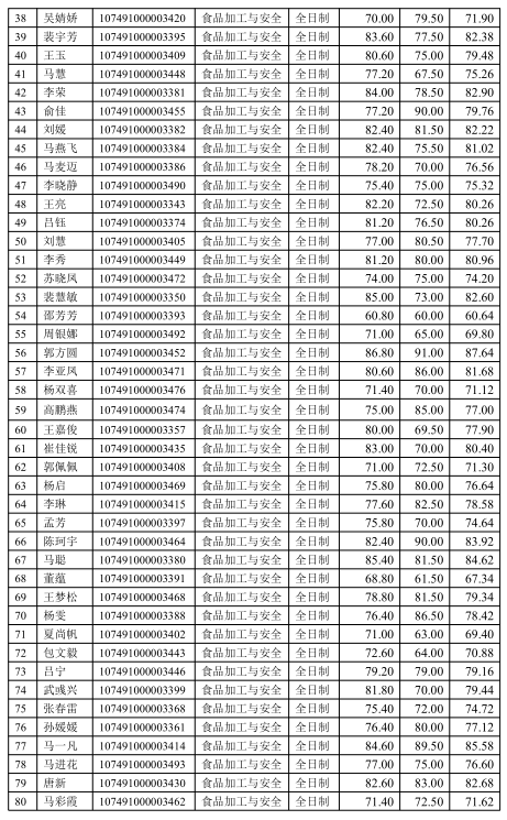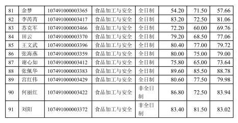 食品与葡萄酒学院2021年硕士研究生招生复试成绩
