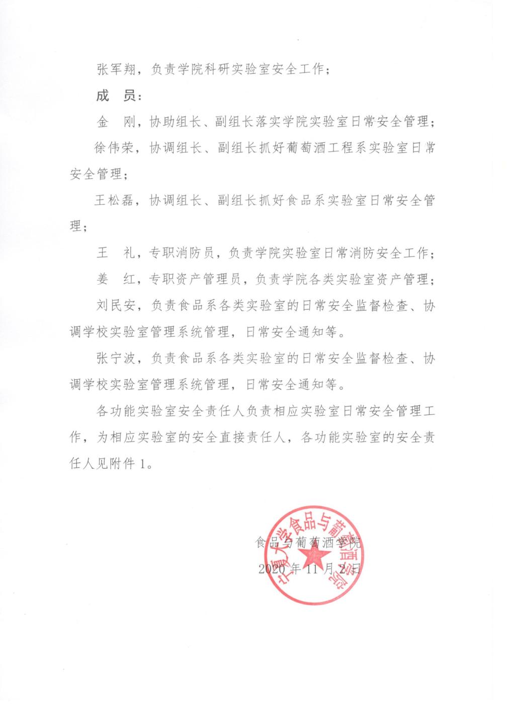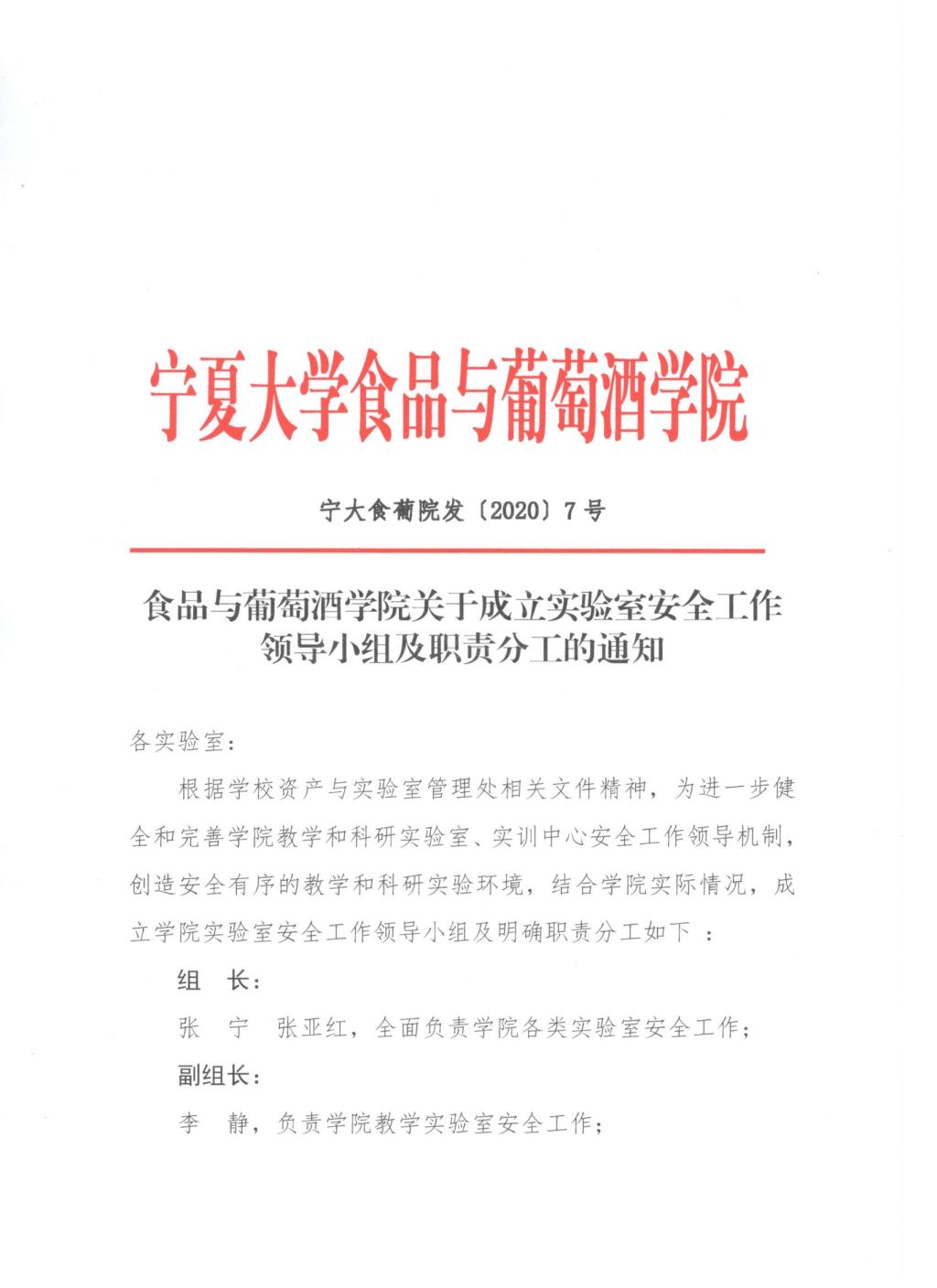 食品与葡萄酒学院关于成立实验室安全工作领导小组及职责分工的通知