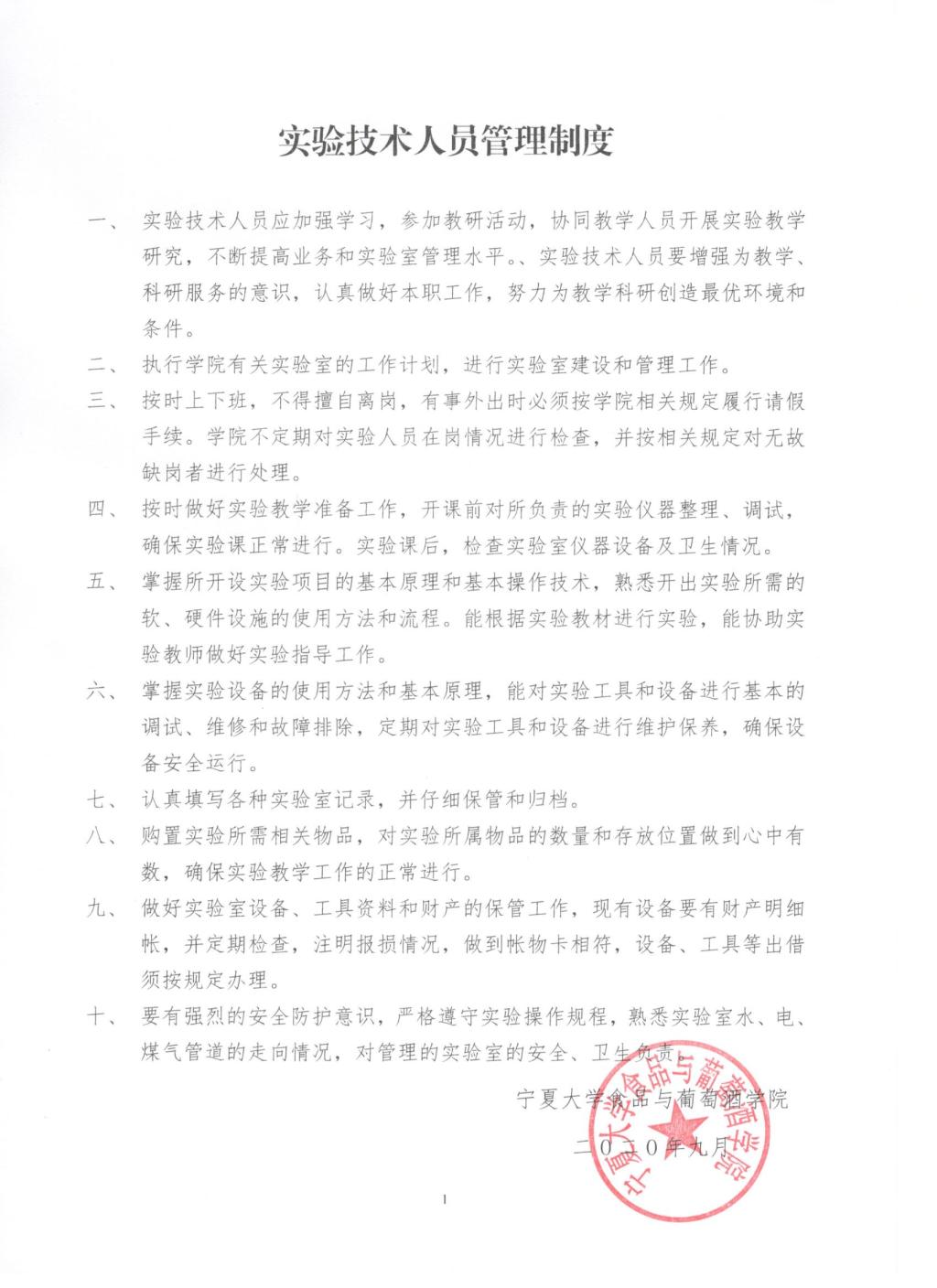 食品与葡萄酒学院实验技术人员管理制度